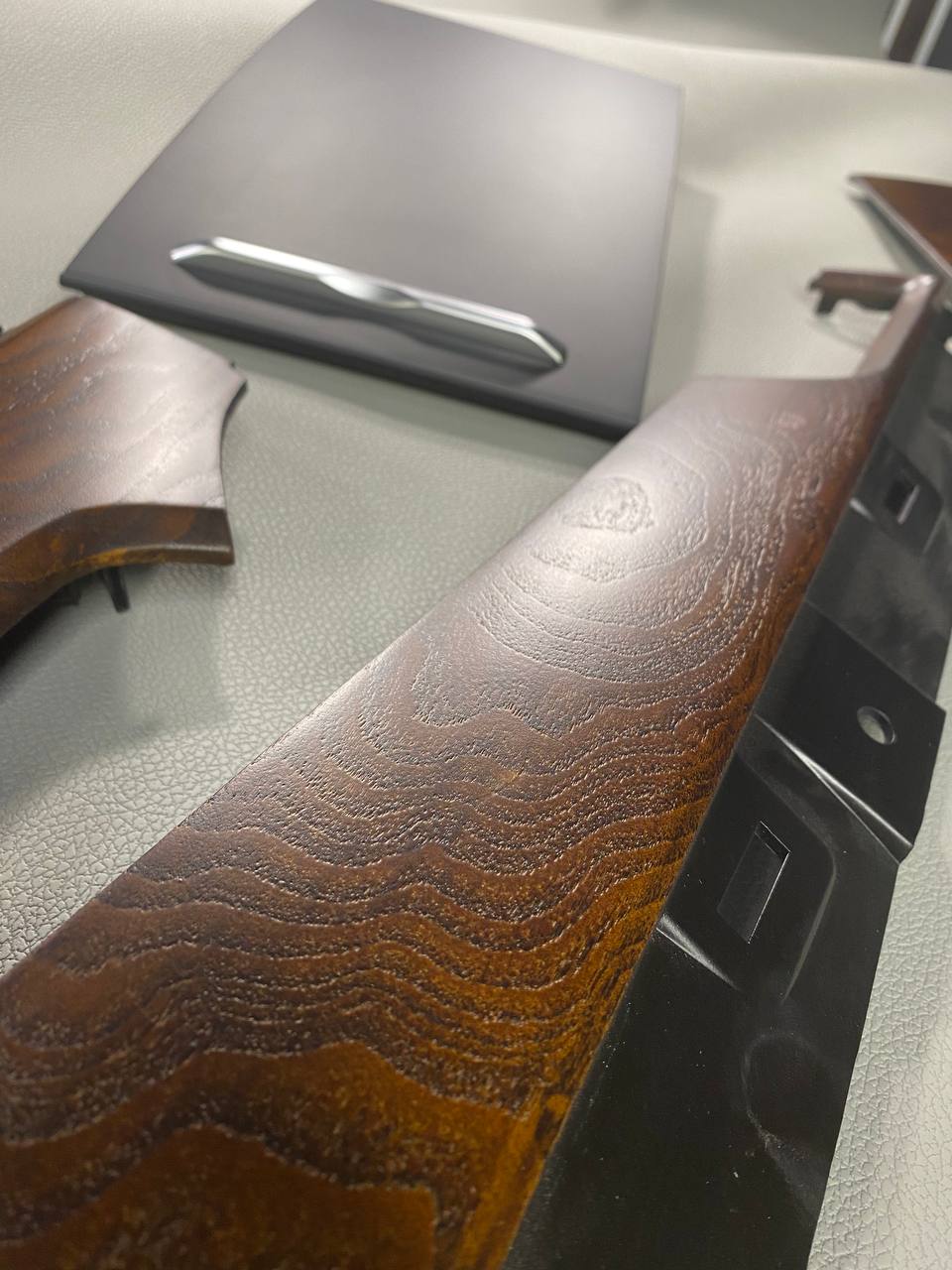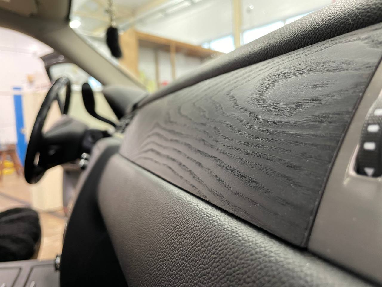 Шпонирование или фанерование салона авто представляет собой сложный технологический процесс отделки интерьера натуральным деревом. Приклеивание шпона — ювелирный работа, которая требует высокого профессионализма.